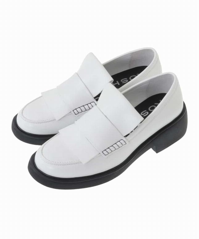 今シーズンのマストトレンド、フラットローファーを潔いホワイトでお作りしました。程よいトゥの丸みと歩きやすい適度なヒールの高さでコンフォタブルな履き心地です。足元をローファーに変えただけで新しいスタイリングが完成するお勧めのアイテムです。